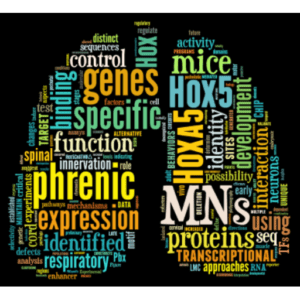We have demonstrated that Hox5 genes are required for the development of diaphragm-innervating phrenic motor neurons (MNs). Selective deletion of Hox5 genes from MNs in mice leads to perinatal lethality due to breathing defects, an extinction of phrenic MN identity, progressive loss and disorganization of phrenic MNs, axon guidance defects and a dramatic loss in synaptic contacts at the diaphragm muscle. These diverse defects are likely the result of coordinated transcriptional regulation of a cohort of genes by Hox5 proteins. We utilize RNA and chromatin immunoprecipitation sequencing to identify phrenic-specific Hox5 transcriptional targets and use novel gene editing techniques such as CRISPR to assess their role in phrenic MN development in vivo.